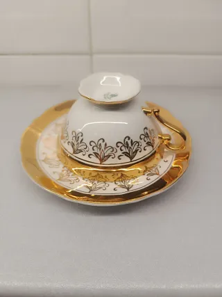 Conjunto de chávena de Café e pires em porcelana da Vista Alegre. Peça antiga com um design elegante. Porcelana e Ouro. - Acabamento em dourado. - Detalhes florais. - Borda em relevo. Muito bonita e delicada. Em excelente estado. Entrego em mãos em Vila Nova de Gaia, Porto, Gondomar, Matosinhos, Maia, Ermesinde, Valongo, Paredes, Penafiel, Paços Ferreira, Lousada, Argoncilhe, Espinho, Santa Maria da Feira, São João da Madeira, Ovar, Estarreja. Também envio por transportadora