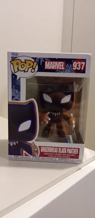 Figura Funko Pop! Marvel número 937, edición especial Gingerbread Black Panther. - Diseño inspirado en pan de jengibre. - Personaje: Pantera Negra. - Coleccionable de Marvel.