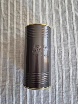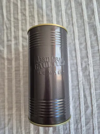 Lata icónica da fragrância masculina Jean Paul Gaultier "Le Male". Perfumista Francis Kurkdjian. - Design cilíndrico metálico. - Acabamento em tom grafite. - Detalhes em dourado nas bordas.