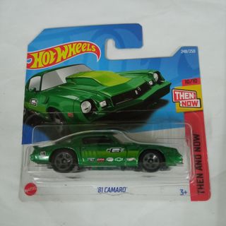 Cartela e carro em muito bom estado - p.22 Miniatura do Hot Wheels '81 Camaro na cor verde. - Modelo da coleção Then and Now. - Escala 1:64. - Detalhes gráficos nas laterais.
