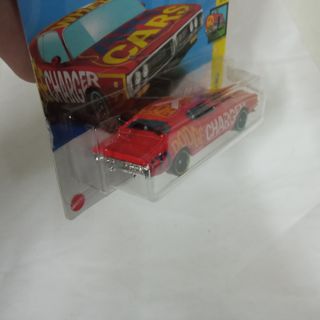Cartela e carro em muito bom estado - p.22 Miniatura do Hot Wheels '71 Dodge Charger na cor vermelha. - Detalhes DODGE CHARGER nas laterais. - Rodas com aro preto e detalhe azul. - Parte da coleção TRACK STARS, número 5/10. - Escala 1:64.
