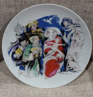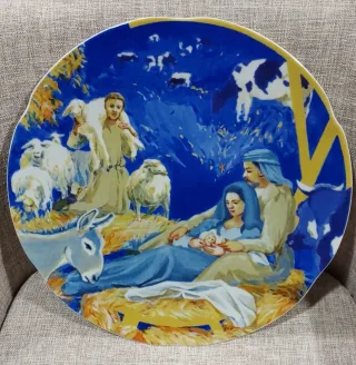 Prato decorativo da Vista Alegre com tema natalício, com excerto do quadro "A Natividade". Novo, ainda na caixa original.