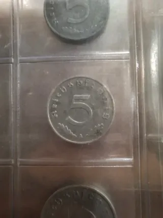 Preço de cada moeda. Moedas da Alemanha, 5 Pfennig, período do Terceiro Reich (1933–1945), nazi. País: Alemanha Ano: 1940 B, G Ano: 1941 A Ano: 1942 A Ano: 1943 A Material: Zinco Originais, não são réplicas. Moedas com circulação, mas com detalhes visíveis, incluindo a águia imperial e inscrição original. 📸 Envio fotos das moedas que vão comprar para mostrar o estado real da moeda. 📦 Possível entrega em mão a combinar em Viseu ou Nelas. Se estiveres interessado em mais moedas do mesmo período, tenho outras datas e denominações disponíveis — posso fazer lote.