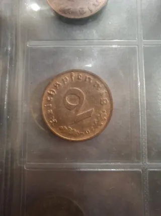 Preço de cada moeda. Moedas da Alemanha, 2 Pfennig, período do Terceiro Reich (1933–1945), nazi. País: Alemanha Ano: 1937 A, D, F Ano: 1938 F, J Ano: 1939 A, B, J Material: Bronze Originais, não são réplicas. Moedas com circulação, mas com detalhes visíveis, incluindo a águia imperial e inscrição original. 📸 Envio fotos das moedas que vão comprar para mostrar o estado real da moeda. 📦 Possível entrega em mão a combinar em Viseu ou Nelas. Se estiveres interessado em mais moedas do mesmo período, tenho outras datas e denominações disponíveis — posso fazer lote.