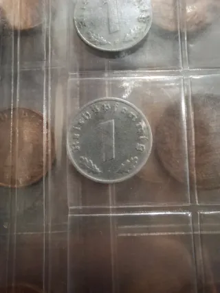 Preço de cada moeda. Moedas da Alemanha, 1 Pfennig, período do Terceiro Reich (1933–1945), nazi. País: Alemanha Ano: 1940 F, G Ano: 1941 A, G, J Ano: 1942 A, D, F, G, J Ano: 1943 B, D Ano: 1944 B Material: Zinco Originais, não são réplicas. Moedas com circulação, mas com detalhes visíveis, incluindo a águia imperial e inscrição original. 📸 Envio fotos das moedas que vão comprar para mostrar o estado real da moeda. 📦 Possível entrega em mão a combinar em Viseu ou Nelas. Se estiveres interessado em mais moedas do mesmo período, tenho outras datas e denominações disponíveis — posso fazer lote.