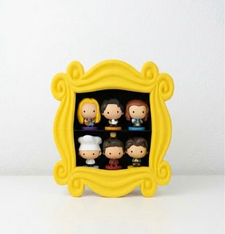 Expositor temático da série Friends, com o icónico formato da moldura amarela da porta. - Inclui 2 porta chaves. - Design inspirado na série. - Ideal para figuras colecionáveis McDonalds. *Não acompanha as figuras colecionáveis.