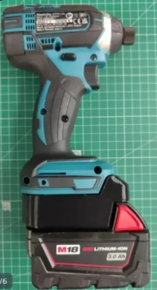 Adaptador para maquina makita lxt para poder usar baterias milwaukee m18. Também tenho para outras marcas. Bateria e máquina não incluída. Impresso em 3d em petg