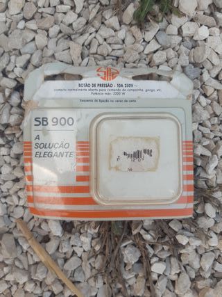 Botão de pressão SP, modelo SB 900, com contacto normalmente aberto. - Corrente nominal: 10A - Tensão nominal: 250V~ - Potência máxima: 2200 W - Ideal para comandos de campainha, gongo, etc. - Esquema de ligação no verso da carta.