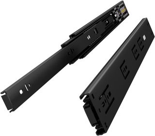 Conjunto de guias corrediças para gaveta extensível, em preto. Produto novo, na embalagem original. - Material: Metal - Cor: Preto - Tipo: Extensível - Condição: Novo