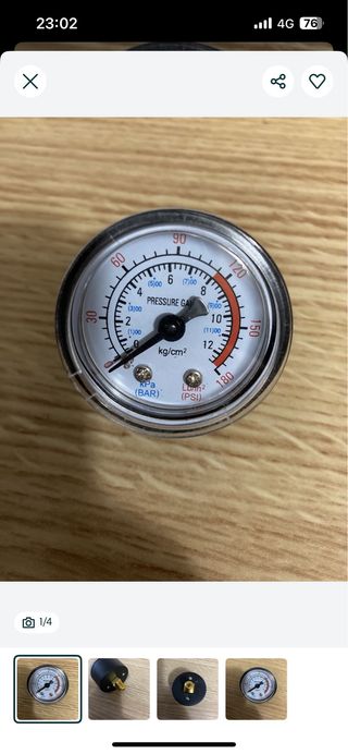 Manômetro de pressão novo - Medidor de pressão em kg/cm², kPa (bar) e PSI. - Mostrador com escala de até 180. -
