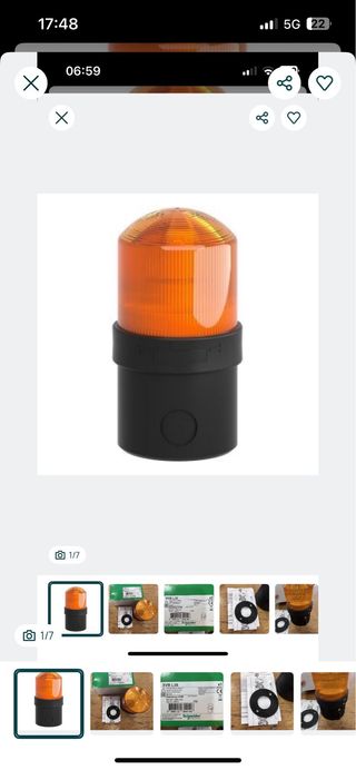 Disponibilizo para venda uma lâmpada de sinalização da Schneider Electric, modelo XVB L, na cor laranja.. - Modelo: Schneider XVB L - Cor: Laranja