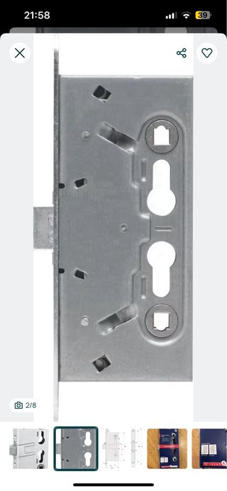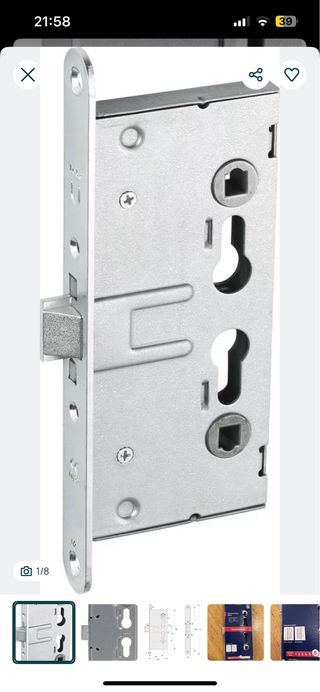 Fechadura de encaixe para portas de emergência da marca Abus, modelo EFS65. - Construção robusta em metal. - Design de encaixe para fácil instalação. - Acabamento prateado.