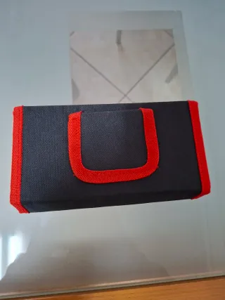 Bolsa para chaves de aperto da marca Dexter. - Cor preta com detalhes em vermelho. - Logotipo da marca em branco.