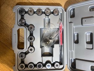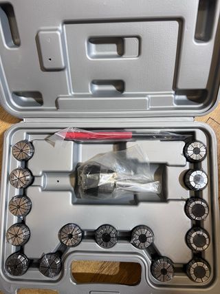 Conjunto completo e novo de pinças ER40 para trabalhos de fresagem e furação. Inclui mandril porta-pinças, chave de aperto e estojo de transporte rígido. As pinças ainda estão protegidas com película/óleo de fábrica. Ideal para oficinas de metalomecânica ou entusiastas de CNC. #ER40 #pinçaser40 #fresadora #torno #mandril #cnc #usinagem #fresagem #pincasdeprecisao #ferramentas #oficina #metalomecanica #bricolage #ferramentaprofissional #machinetools #workshop