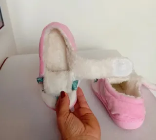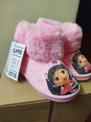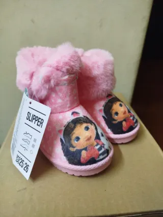 Pantufas infantis com o tema Gabby. - Tamanho 25/26. - Cor rosa com detalhes de pelo. - Estampa da personagem Gabby.
