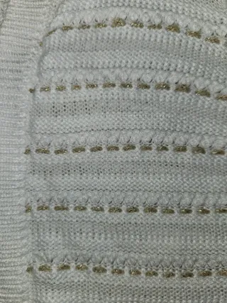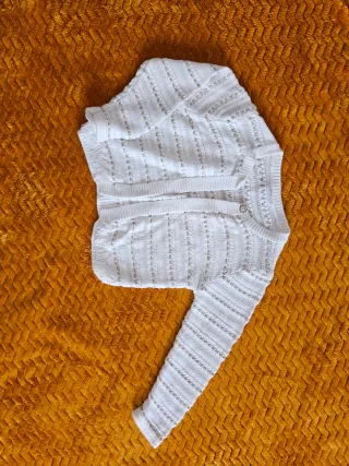Casaco infantil da Mayoral, em branco com um delicado padrão. - Padrão em malha com detalhes dourados. - Fecho de botões à frente. - Mangas compridas.