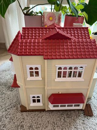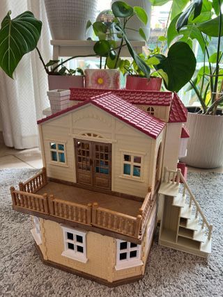 Conjunto de brinquedos da Casa Sylvanian Families. - Inclui casa com varanda e escadas e iluminação . - Inclui acessorios ( Não Originais ) de mobiliario : Cozinha , casa de banho , sala e quarto. Excelente estado de conservação .