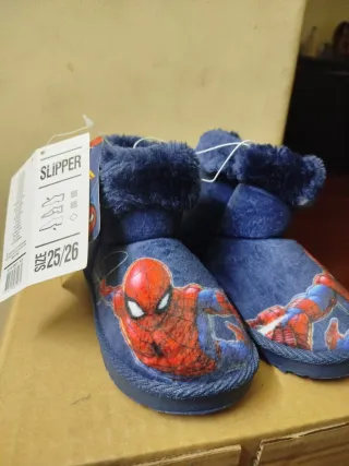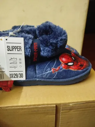 Pantufas infantis com o Homem-Aranha. - Tamanho 29/30. - Design azul com forro de pelo. - Estampa do Homem-Aranha na frente.