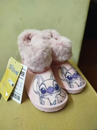 Pantufas cor-de-rosa com a personagem Angel da Disney. Perfeitas para manter os pés quentinhos. - Design com a personagem Angel. - Acabamento em pelo sintético. - Tamanho 25/26.
