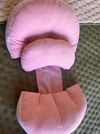 Almofada de maternidade em tecido rosa. - Design em forma de cogumelo. - Tecido macio e confortável.