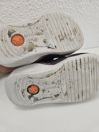 Sapatilhas azuis com detalhes vermelhos e o icónico galo da marca. - Fecho de velcro. - Sola branca com detalhe vermelho. - Interior em malha vermelha.