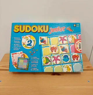 Jogo educativo Sudoku Júnior, ideal para crianças a partir dos 4 anos. ✔️ Jogo completo ✔️ Em bom estado ✔️ Desenvolve lógica e raciocínio Conteúdo: – Tabuleiro reversível – 36 fichas com ilustrações – Livro com combinações e soluções Permite jogar com números ou com desenhos de animais, com dois níveis de dificuldade (4 ou 6 quadrículas). Pode ser jogado sozinho ou em grupo. #sudokujunior #jogoeducativo #jogoinfantil #brinquedoseducativos #jogodetabuleiro #criancas4anos #aprenderbrincando #educativo #wallapop