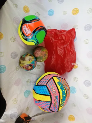 Preço inclui: 2 bolas pequenas 1 bola média 1 bola de volei 1 almofada insuflável Sujas e a precisar de ar mas sem furos