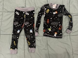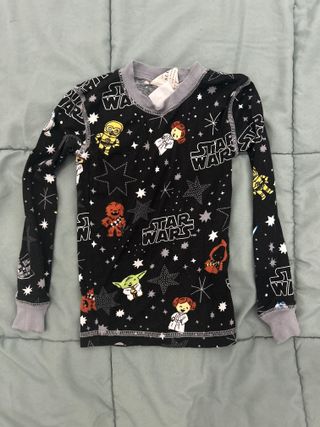 Conjunto de pijama infantil com tema Star Wars. Es pegado. - Estampa divertida com personagens icônicos. - Manga longa e calça comprida. - Ideal para noites confortáveis.
