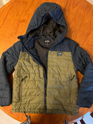 Casaco de inverno da marca Billabong, em bom estado. - Design acolchoado. - Capuz. - Fecho frontal.