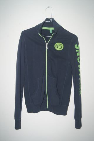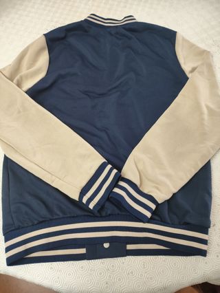 Casaco desportivo com um design moderno e confortável. - Mangas em bege e corpo em azul. - Detalhe de letras S com spirit e Sports no peito. - Gola, punhos e barra com riscas. - Fecho de botões à frente. - Novo nunca usado