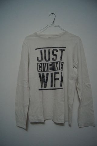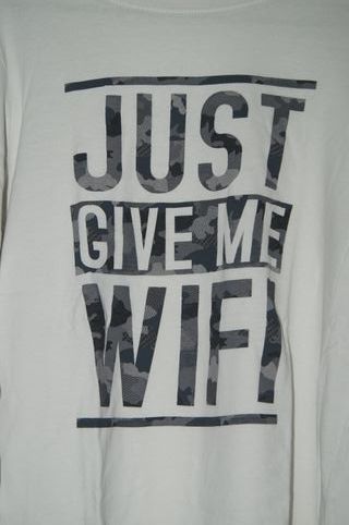 Camisola branca de manga comprida com uma mensagem divertida. - Tamanho: 13-14 anos - Cor: Branca - Estampa: JUST GIVE ME WIFI
