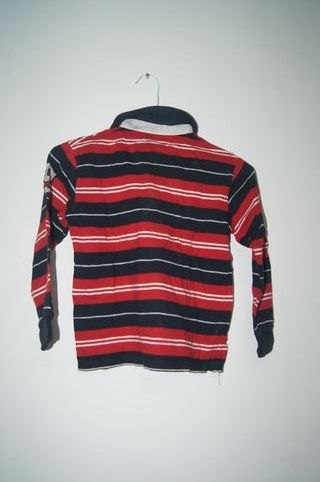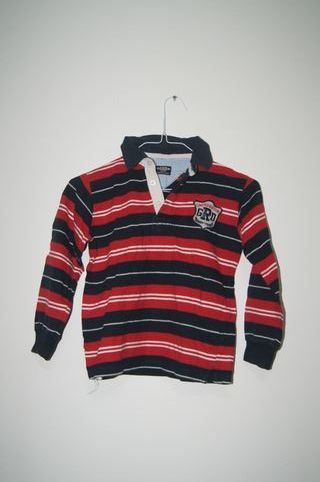 Camisola de manga comprida para criança, em bom estado. - Padrão às riscas em vermelho, azul escuro e branco. - Gola polo com botões. - Escudo bordado no peito. - GRD Kids