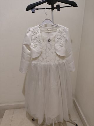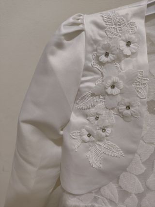 Vestido branco para menina, ideal para comunhão ou cerimónia. Peça nova com etiqueta. - Conjunto de vestido e casaco. - Detalhes florais bordados no casaco. - Saia em tule. - Tecido acetinado no corpete e casaco.