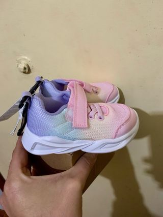 Sapatilhas confortáveis para menina, com um design moderno e cores vibrantes. - Combinação de rosa, lilás e branco. - Fecho de velcro para ajuste fácil. - Material respirável. Novas na caixa. Nunca abri porque comprei o tamanho errado.