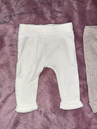 Collants de bebé para 1-3 meses. A creme é da Zara.