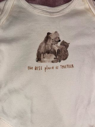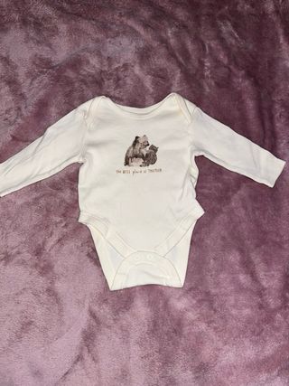 Body e jardineira para bebé de 3 a 6 meses. Jardineiras são da Primark. Body do urso é da C&A.