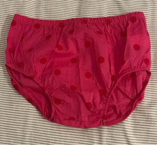 Cueca tapa fraldas em tecido rosa com bolinhas vermelhas. - Cintura elástica. - Pernas com elástico. Marca: Marése Tamanho: 18 meses (K)