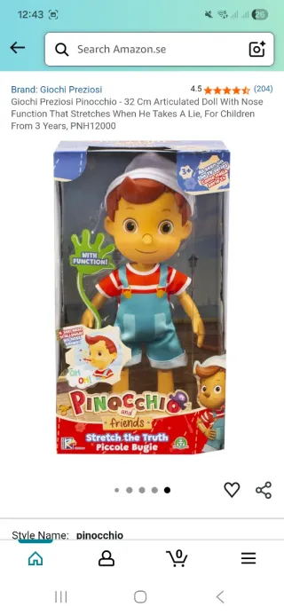 Vendo boneco Pinóquio da Giochi Preziosi (modelo 32cm), da série Pinóquio and Friends. ✨ Características: ✔ Boneco articulado ✔ Função do nariz que cresce quando ele “mente” ✔ Roupa original ✔ Com boné ✔ Ideal para crianças, coleção ou decoração 👉 Marca: Giochi Preziosi 👉 Modelo: PNH12000 👉 Altura: 32 cm