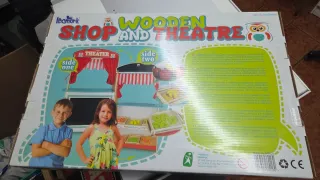 Brinquedo Leomark 2 em 1, que pode ser usado como loja ou teatro. Ideal para estimular a criatividade. - Design em madeira. - Inclui elementos de loja e palco de teatro. - Ilustrações coloridas e divertidas.