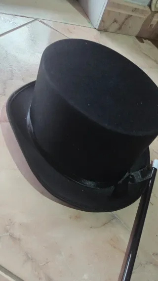 Conjunto de disfarce de mágico. - Chapéu de mágico preto. - Varinha mágica com detalhes brancos.