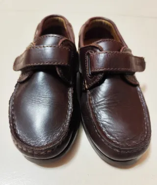 Sapatos de vela castanhos em pele da prestigiada marca Alex em muito bom estado Sapatos de vela para Rapaz sem sinais de uso, sem defeitos ou danos Sapatos de vela com aperto através de banda fixadora Tamanho: 32 Medidas: Palmilha: 20.4 cm Peso (par): 360 gramas