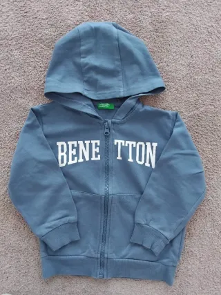 Casaco com fecho completo e capuz para menino. - Cor azul. - Logo BENETTON em branco no peito. - Bolsos frontais. - Punhos e cintura canelados.