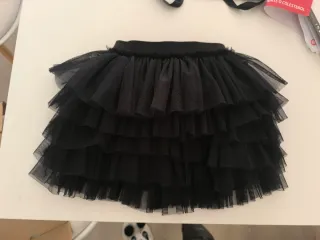 Saia preta da Zara com folhos, tamanho 122cm. - Tecido leve e esvoaçante. - Cintura elástica para maior conforto. - Design em camadas com acabamento delicado.