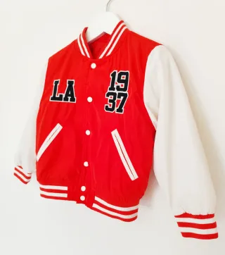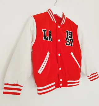 Blusão estilo colegial cor de laranja e branco da prestigiada marca Primark em muito bom estado Casaco para Rapaz sem sinais de uso, sem defeitos ou danos (passa por novo) Blusão com elevado estilo e personalidade Casaco Los Angels 1937 By Primark Tamanho: 104 cm (3-4 anos) Medidas: Ombros: 32 cm Cava a cava: 38 cm Largura final: 30 cm Comprimento: 40 cm Manga pelo ombro: 36 cm Material: 100% Poliéster Peso: 266 gramas