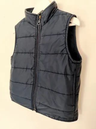 Blusão sem mangas de cor azul da prestigiada marca Benetton em muito bom estado Colete acolchoado para Rapaz sem sinais de uso, sem defeitos, nodóas ou danos Colete infantil com pouca grossura (ideal para a meia estação) Colete com 2 bolsos exteriores e fecho de correr central Tamanho: 130 (8 anos) Medidas: Cava a cava: 38 cm Largura final: 38 cm Comprimento: 48 cm Material: 100% Poliamida Peso: 200 gramas