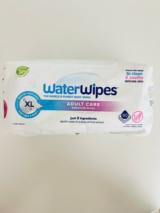 Embalagem de 90 unidades de toalhitas XL Water Wipes, novas na embalagem com data de validade até 10/2026.