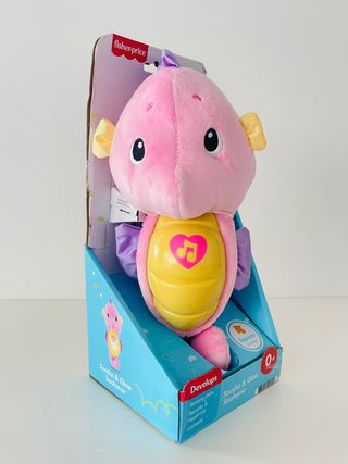 Cavalo marinho de peluche da marca Fisher Price, na cor rosa. Ideal para acalmar e entreter os mais pequenos. - Desenvolve habilidades sensoriais - Promove segurança e curiosidade - Possui luzes, músicas e sons suaves