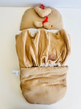 Cobertura universal para alcofa (3 peças) almofada 26x32 / capa 20cm altura / colchão 72x32cm, na cor camel, novos a estrear.