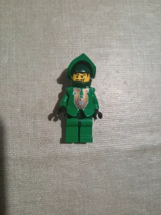 Figura Lego Forestman usada, modelo Cas140a. - Peça de colecionador. - Detalhes em verde e vermelho. - Chapéu marrom com pena amarela. - Acessório de arco e flechas nas costas.