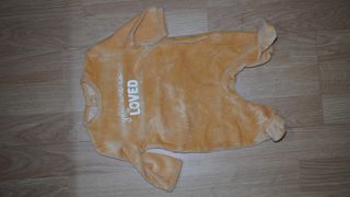 Macacão de bebé em tecido aveludado, cor amarela, de 1 mes - Estampa you are so loved em branco. - Manga comprida.